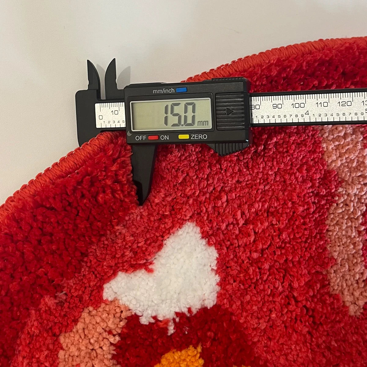 We ensure consistent quality by measuring every rug with precision tools, confirming a 15 mm plush pile. The dense fibers create a soft, cushioned feel, while the reinforced edge keeps the rug durable and well-shaped over time.